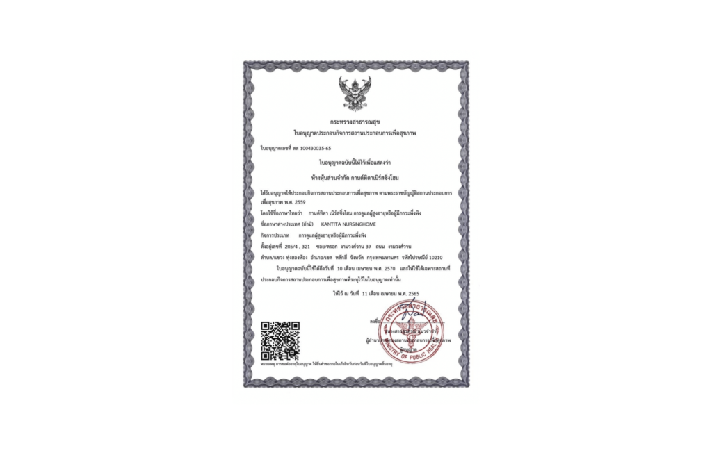 ด้วยประสบการณ์การดูแลผู้สูงอายุกว่า 20 ปี การดูแลของเรามุ่งมั่นที่จะดูแลญาติมิตรของท่านด้วยความสามารถทั้งหมดที่เรามี ให้คนที่คุณรักได้มีสุขภาพพลานามัยที่ดี